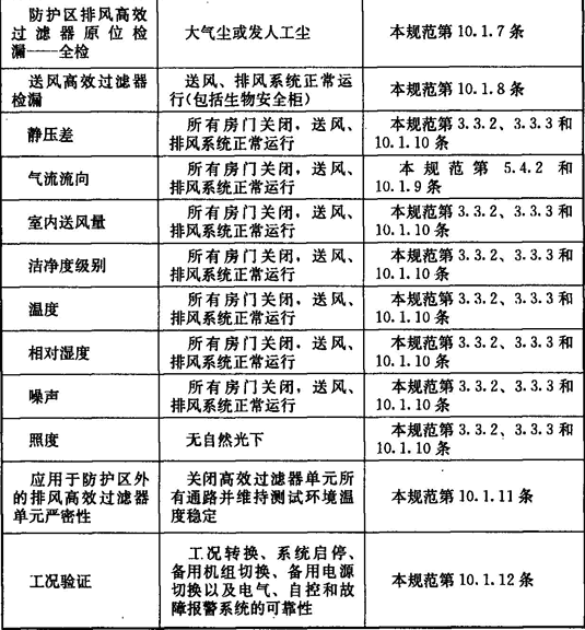 10.1.10 靜壓差、送風(fēng)量、潔凈度級(jí)別、溫度、相對(duì)濕度、噪聲、照度等室內(nèi)環(huán)境參數(shù)的檢測方法和要求應(yīng)符合現(xiàn)行國家標(biāo)準(zhǔn)《潔凈室施工及驗(yàn)收規(guī)范》GB 50591的有關(guān)規(guī)定。